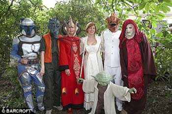 这对36岁的新人为此准备了9个月,要求家人和亲朋好友都打扮成星战中的人物来参加婚礼。