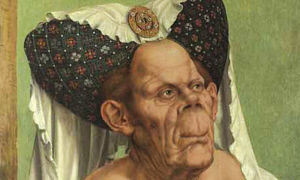 这幅画像名为《老妇人》,由比利时佛兰芒画家昆滕·马赛斯作于1513年。画中妇人因为脸部骨骼和五官变形,相貌丑陋。插图画家约翰·坦尼尔为刘易斯·卡罗尔创作的童话《爱丽丝漫游奇境记》画插图时,从《老妇人》中获得灵感,塑造出凶恶的公爵夫人形象。这幅画像因此闻名,又被称为“丑公爵夫人”。英国《卫报》报道,《老妇人》即将于15日和其他描绘美人的画作共同展出。