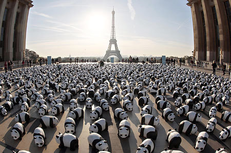 中新网10月20日电 综合报道,10月18日,在法国首都巴黎,1600只纸制熊猫被放置在广场上供人们参观。这一活动由世界自然基金会(WWF)发起,旨在呼吁人们保护为数不多的大熊猫,同时提醒人们保护赖以生存的自然环境。
