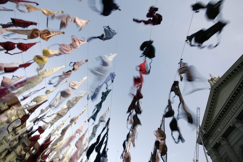 中新网10月21日电 综合报道,10月20日在瑞士首都伯尔尼的联邦广场上悬挂了近1500个胸罩,此举旨在提高人们对乳腺癌防治的认识。