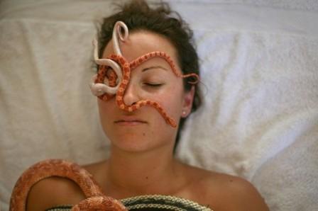 据悉,顾客之所以敢尝试蛇式按摩,是因为他们相信一旦克服了最初的疑虑心态,那么他们便会发现与动物的身体接触完全可以令自己的心灵受到抚慰,并进而变得轻松自如。
