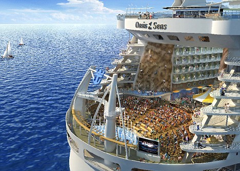 这艘名为“海中绿洲”号的邮轮由总部设在美国迈阿密的皇家加勒比邮轮公司订购,造价为25亿美元,定于明年年底完工交付使用,首航目的地为美国迈阿密。