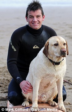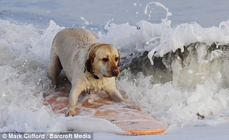 这只三岁的拉布拉多犬能够驾着冲浪板在海浪中保持身体平衡,这对一只狗来说很难做到。小狗的主人是一对父子,他们也是冲浪爱好者。据父亲介绍说,这只狗从生下来就开始和他们一起下水玩耍了。
