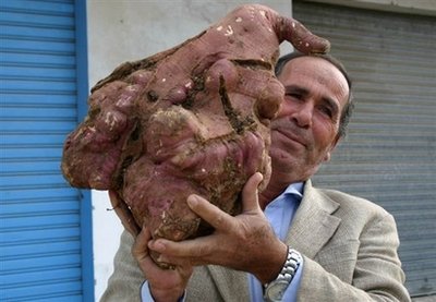 中新网12月9日电 据星岛日报网9日报道,位处中东的黎巴嫩经常战火连天,但当地的农民却成功种出全球最巨型的马铃薯,形状有如怪物,重达24.9磅(11.3公斤),相信已刷新世界纪录。
