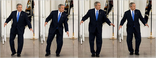 2008年3月5日,在获得党内提名所需的1191张党代表票后,美国共和党总统候选人约翰·麦凯恩前往白宫,与总统布什共进午餐,作为布什正式宣布支持他的前奏。但布什却被麦凯恩晾在白宫北门等了好一会儿。早早来到白宫北门的布什左等右等麦凯恩不到,为了调节气氛,竟然在众位记者面前独自跳起踢跶舞来。