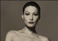 这种白色帆布手提袋上所印的是当时身为名模的布吕尼在1993年拍摄的一幅站立的全身裸体形象。