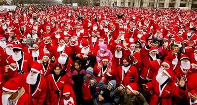 罗马尼亚4000人同时扮圣诞老人