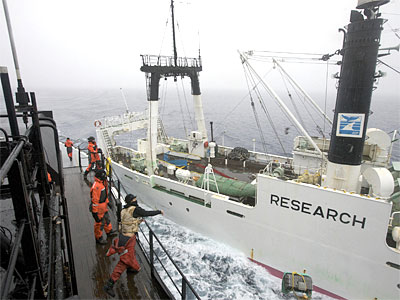 中新网12月29日电 据台湾联合新闻网报道,为阻止日本捕鲸船在南极捕捞鲸鱼,美国环保组织海洋守护者协会的船只“史蒂夫•欧文”号的船员日前在南极洲莫森半岛以北海域向日本捕鲸船“海幸丸”号投掷“臭弹”和装有油漆的玻璃瓶。