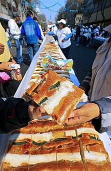 日前在墨西哥城宪法广场中心,人们制作了一块重达11吨、长达1600米的巨大面包,以此来庆祝即将到来的纪念东方三圣贤的传统节日,届时该国将有约20万民众来到此地,分享美味。