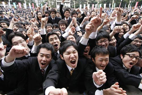 当天,约3000名毕业生聚集在这里,一同参加了这场别开生面的求职誓师大会,通过这一方式增强信心,鼓舞士气,希望能在当前不景气的经济困境中找到立足之地。