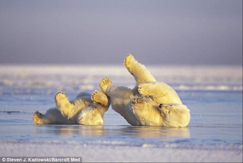 他还声称:“北极熊的智商和社交能力都是相当了不起的。我亲眼看到过北极熊在冰上打洞来给冻肉解冻的场景。他们还可以纹丝不动地坐在海豹出没的洞口等待数天,我感觉北极熊是一种极富有禅意(Zen-like)的动物。”此外,科兹洛夫斯基还经常会前往各地巡回演讲,向公众宣传北极熊面临威胁的科普知识。不过,有生物学家和气候学家认为,北极熊有可能是北极地区首个消失的物种。