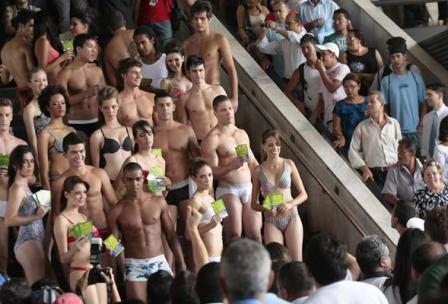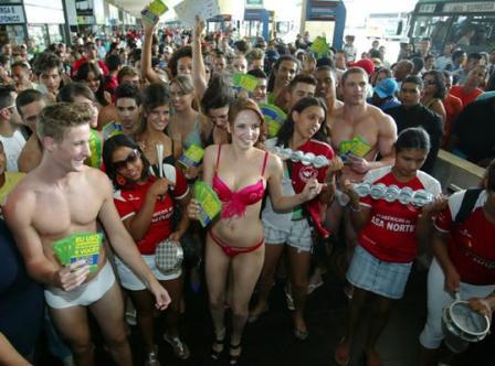 中新网2月18日电 据巴西媒体报道,17日是巴西的内衣节,巴西首都巴西利亚的一座公共汽车站,一群身穿性感内衣的模特招摇过市,吸引大批路人注目。