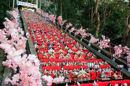每年的3月3日是日本的传统节日女儿节,父母通常会把人偶装饰在家门口,祈求女儿健康成长。胜浦居民从2001年开始,每年2月下旬起举行盛大的女儿节人偶展示活动,女儿节已成为当地旅游产业的支柱项目。今年有约3万个人偶出现在胜浦的大街小巷。(新华社记者 任正来 摄)