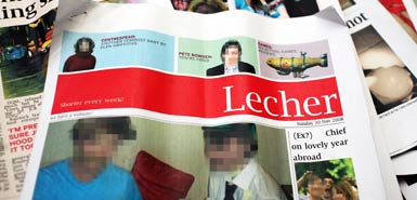 这份特别版起了另一个名字叫《Lecher》,只印刷了50份,上个学期末在一个餐饮聚会上只分派给校报的编采人员。