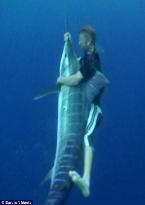 这名男子今年33岁。据他称,一生中尽和大鱼打交道了,在捕鱼表演方面经验丰富。有一次在冲浪板上捕鱼的时候,枪鱼把他拽出11公里。最惊险的一次就是从直升飞机上跳下,徒手捕到一只枪鱼。