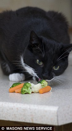 据英国媒体4月14日报道,众所周知,猫最喜爱的食物是鱼、老鼠或者其它肉类,但英国的一只小猫却显得非常另类。它从小就拒绝进食任何荤肉,而只吃黄瓜、香蕉和花椰菜等各类水果蔬菜,成了远近闻名的素食主义者。
