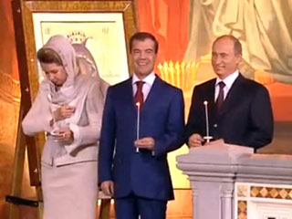 据俄罗斯新闻网报道,俄总统梅德韦杰夫和总理普京20日出席了在莫斯科救世主大教堂举行的复活节祈祷仪式。然而,负责转播节目解说的主持人在交代出场人物时将梅德韦杰夫和普京的头衔混淆互换,这样的口误让收看节目的观众忍俊不禁。