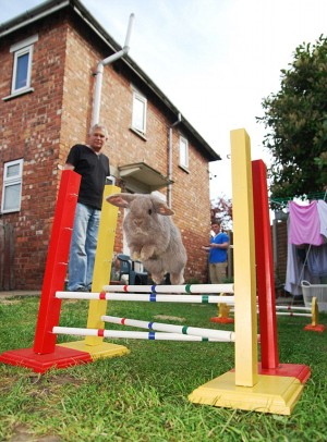 中新网5月4日电 对于一般人家的兔宝宝来说,每天最惬意的事莫过于睡睡懒觉或是啃啃胡萝卜;然而英国哈斯拉姆家六只宠物兔的生活却不落俗套,据英国《每日邮报》1日的报道,在主人的指导下,这六只小兔每天都要接受“跨栏”训练,它们还满怀信心的要去参加宠物比赛。