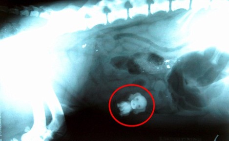 中新网5月8日电 英国柴郡一只叫做阿尔菲的猎犬向大家证明了世上确实是有“狗吃狗”一事,据英国《每日邮报》报道,这只猎犬近日来不吃不喝,病得非常严重。通过对其进行X光检查,主人发现它的病是因为吞掉了一只玩具小狗而引起的。