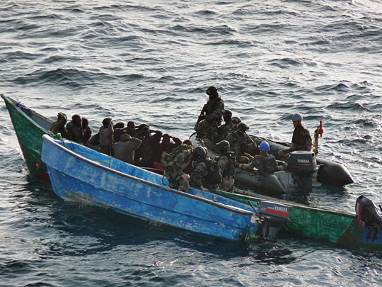 据一位法国海军发言人称,他们自去年4月份以来已经抓获了57名海盗。亚丁湾索马里海盗劫持事件在2008年激增11%。海盗问题日趋严重,促使多国派出海军展开护航和联合打击海盗任务。