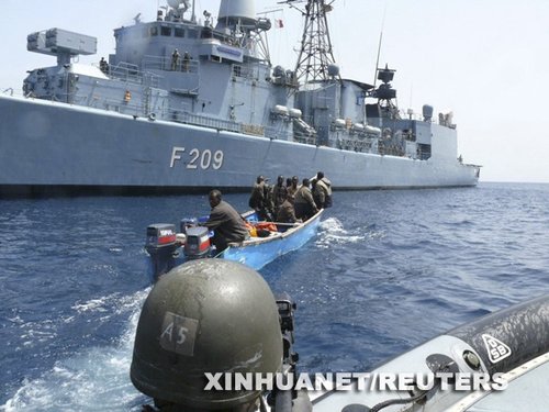 德国防部发表声明说,海军驱逐舰“莱茵兰—普法尔茨”号3日早些时候收到一艘德国商船紧急求救电话,说商船正遭到配备有反坦克火箭筒和机关枪等武器的海盗袭击。