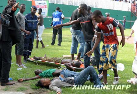 这场比赛是在阿比让的乌弗埃-博瓦尼体育场进行的,共有近5万名观众在现场观看了比赛。有消息说,引发这一意外事件的原因是体育场的一面墙突然坍塌,致使附近的观众在恐慌中夺路逃离现场时发生了踩踏事件。据介绍,目前这个体育场的周边已经恢复了平静。