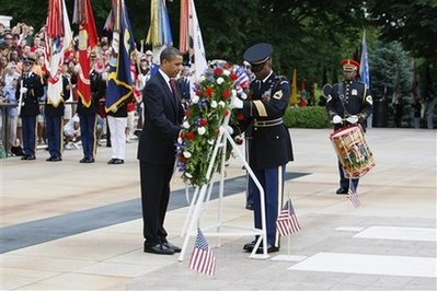 中新网5月26日电 据美联社等媒体消息,美国总统奥巴马25日在阿灵顿国家公墓向阵亡美军士兵献花圈。目前,有关南北战争中阵亡的士兵纪念问题还存在一定争议,但白宫没有对相关建议作出回应。