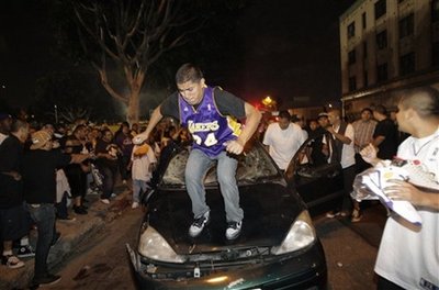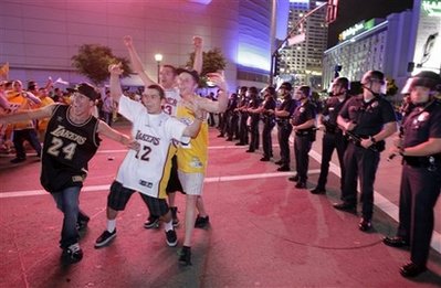 中新网6月15日电 据美国媒体报道,在洛杉矶湖人队15日夺得本年度NBA总冠军后,洛杉矶球迷涌上街头欢庆胜利,但在庆祝过程中偶发暴力事件,警方逮捕了至少8人。