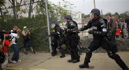中新网9月25日电 24日,二十国集团峰会主办城市匹兹堡发生千人游行示威,抗议资本主义制度。示威者砸坏了市中心多家沿街店铺窗户,警方不得不动用胡椒瓦斯(pepper gas)和警棍驱散抗议人群。