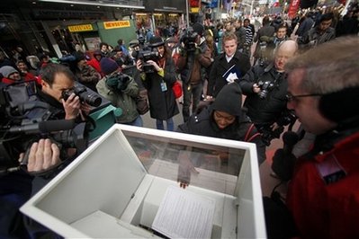 第三届“大扫除日”(Good Riddance Day)前天在纽约时报广场(Times Square)举行,现场碎纸机转个不停,一年来的厄运也象征性的一扫而空。