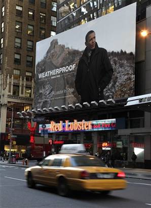 中新网1月12日电 综合媒体报道,未经授权使用奥巴马照片做广告的风衣商,日前同意撤下树立在纽约时报广场上的奥巴马广告牌。