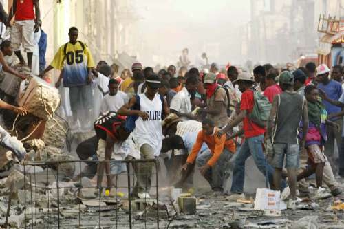 太子港街头的抢掠事件已蔓延至市中心多个地区,星期一有数百名青少年爬过被震损的墙壁,闯入多间店铺大肆搜掠,任何东西都不放过,其中牙膏更成为搜掠目标,因为可以用来涂在鼻孔下掩盖全市充斥的腐尸味。