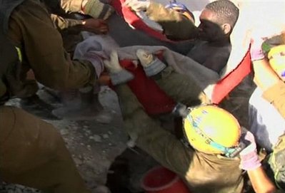 中新网1月23日电 综合外电报道,海地再次上演生命奇迹,一名老年女性与一名年轻男性,在海地地震废墟中被埋长达10天后,于22日被成功救出。
