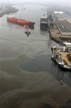 港务局官员表示,发生意外的油轮属于马来西亚一家公司所有,船上载运了八万桶原油,目前还不确定到底有多少原油外溢。但是原油散发出的硫化氢气味令人作呕,虽然没有危险,不过当局还是担心有爆炸危险,因此下令附近居民暂时撤离。海岸巡防队已经展开清理作业。