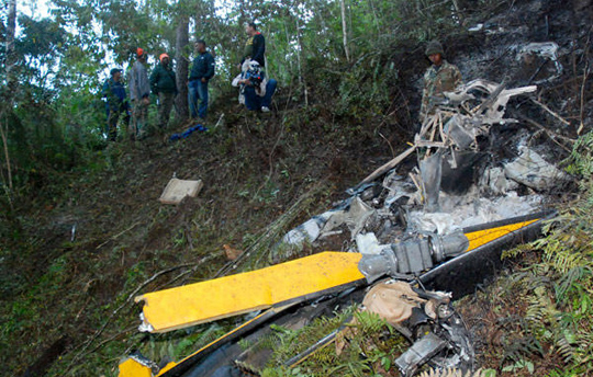 直升机残骸散落在树林,配件及杂物飞脱散落山坡。2名死者分别是43及53岁的美国人,他们于上月12日海地发生强烈地震后,由美国接载医生往海地,但回程时直升机撞山坠毁。