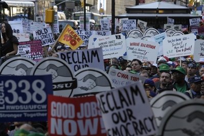 这次示威行动由美国最大工会组织劳联-产联(AFL-CIO)以及多个小区团体发起,参加示威的群众除了工会领袖和工人外,还有失业人士、因为无法供款而面临银行收楼的业主等,他们高举写有“华尔街透支我们的经济”和“收回美国”等标语在市府公园集会。