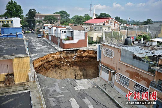 中新网6月2日电 据香港《文汇报》报道,热带风暴阿加莎横扫中美洲,造成至少150人死亡。受到连场暴雨影响,危地马拉城一处出现地面下陷,形成一个深60米、直径30米的地洞。