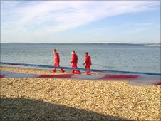 南安普敦一些沙滩被封锁,专家将评估油污是否已上岸污染沙滩。