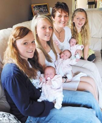 中新网5月14日电 据英国媒体13日报道,英国妈妈戴尔在生了一对双胞胎女儿,以及另外一女后,最近又诞下三胞胎女儿。而更少有的是,戴尔诞下的三胞胎来自两个卵子。这一家犹如中大奖,因为这样的生育几率,百万家庭中才有一个。