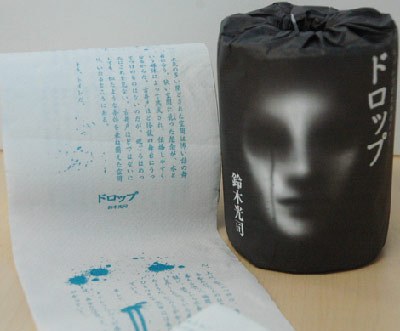 这篇印在卫生纸上的恐怖小说为铃木光司的新作《Drop》,共9章,内容恰好是发生在公共厕所里的故事。为配合人们通常每次如厕用纸约80厘米的使用量,在80厘米长的卫生纸内印有差不多2000字,正好可在几分钟内读完。