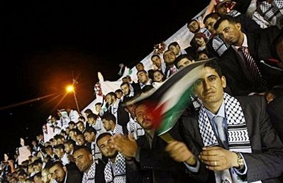 大约有450对来自巴勒斯坦的新人参加了当天的集体婚礼,哈马斯的主要领导人也参加了庆祝活动。