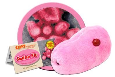 甲型H1N1流感病毒玩具外型十分可爱,长约17厘米,像颗放大版的粉红色芸豆,毛绒绒的,孩子们抱在怀里爱不释手。除了甲流病毒毛绒玩具,竟然还有以淋病病毒、艾滋病病毒、炭疽病毒、衣原体病毒和臭虫为原型的毛绒玩具系列。