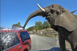 据台湾“今日新闻”报道,这家动物园为了度过经济危机难关,除了让民众观赏动物园外,还特别提供大象洗车服务。他们出租两只亚洲象来替游客们洗车,它们用着象鼻在车上喷水,然后在拿起海绵洗车。这种新奇的洗车方式,让许多游客都十分惊奇。
