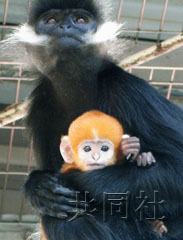据日本共同社报道,动物园介绍称,小黑叶猴10月9日出生,体长约20厘米,体重约200克。黑叶猴主要分布在中国和越南的森林里,靠吃树叶为生。一般半年后会长成和母猴一样的黑色。