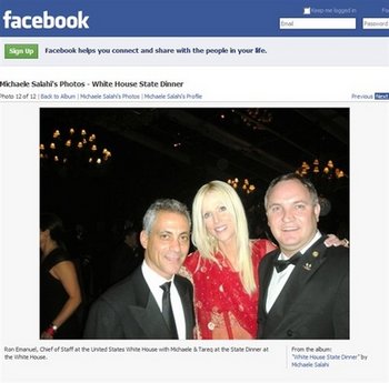 报道表示,萨拉希夫妇二人在宴会上落落大方,毫不心虚,他们先后与美国副总统拜登、白宫幕僚长、海军陆战队高官、美国哥伦比亚电视台知名主播以及美国广播公司电视台主持人亲密合影。在一张照片中,副总统拜登还挽着萨拉希夫人的手。萨拉希夫妇事后将照片放上社交网站Facebook大肆炫耀,令白宫颜面无存。