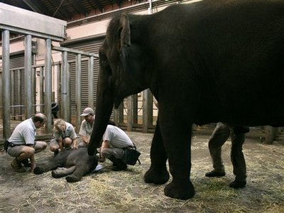 他说,由于痛苦分娩过程中过分折腾,这头小象可能已经陷入昏迷,动物园兽医以为它已经死亡。而小象10日凌晨3点27分的平安出生,动物园管理人员称真是一个奇迹。