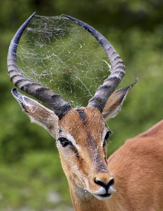 所罗门说,羚羊肯定是在公园里游逛时,无意之中两角挂到了悬在某处的蜘蛛网,并将网和蜘蛛一同载走,一直挂在角上。