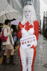 中新网3月25日电 据日本共同社报道,美国动物保护组织“PETA”的一名加拿大籍女性成员24日在东京赤坂的加拿大驻日本大使馆前,以全身仅穿内衣的方式抗议捕猎海豹获取毛皮。