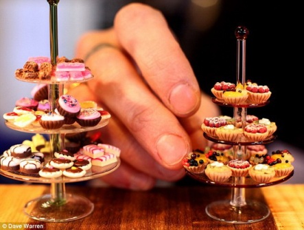 据英国《每日邮报》28日报道,2010年英国伯明翰春季国际博览会上一组微型饮食创作最抢镜头,这个微型饮食由微型蛋糕、微型房屋和小玩偶组成。