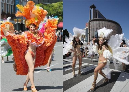 中新网5月17日电 据日本新闻网报道,日本著名的港口城市神户市16日举行了“神户祭”(旅游文化节)的最后狂欢。1万多名市民穿着比基尼走上街头,跳起了热烈的桑巴舞。